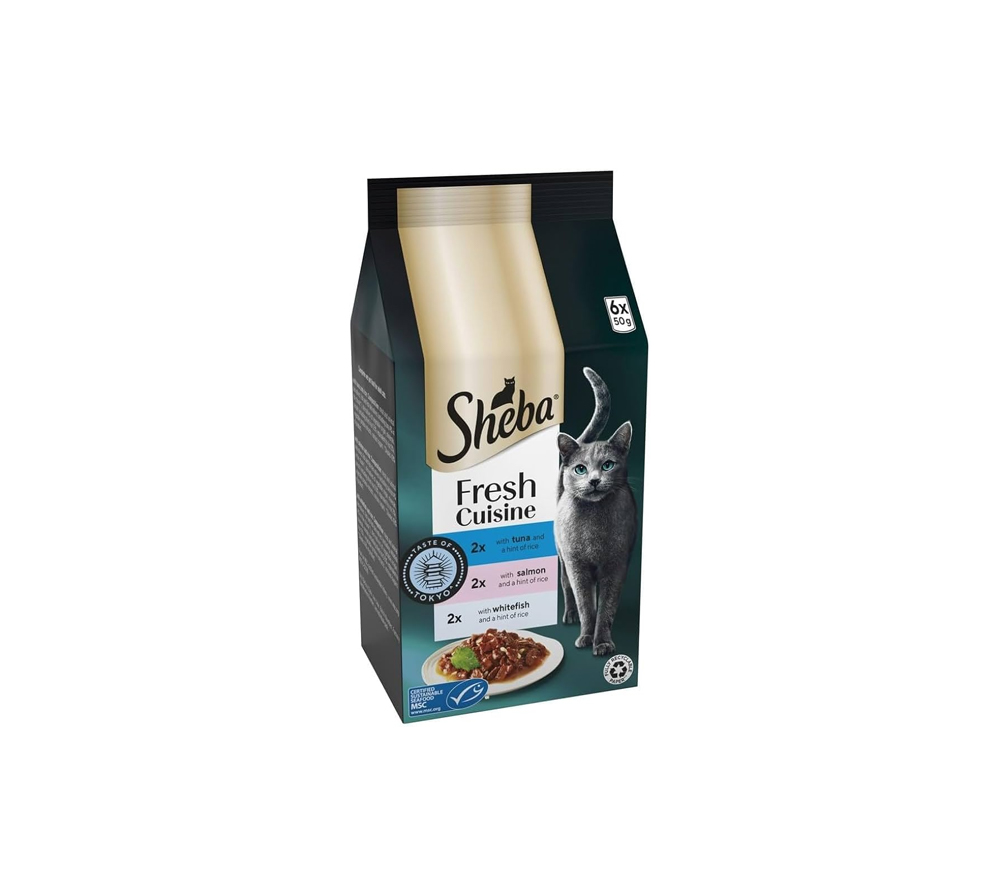 شيبا طعام رطب بنكهة سمك السالمون والتونة مع الأرز – 6x50g